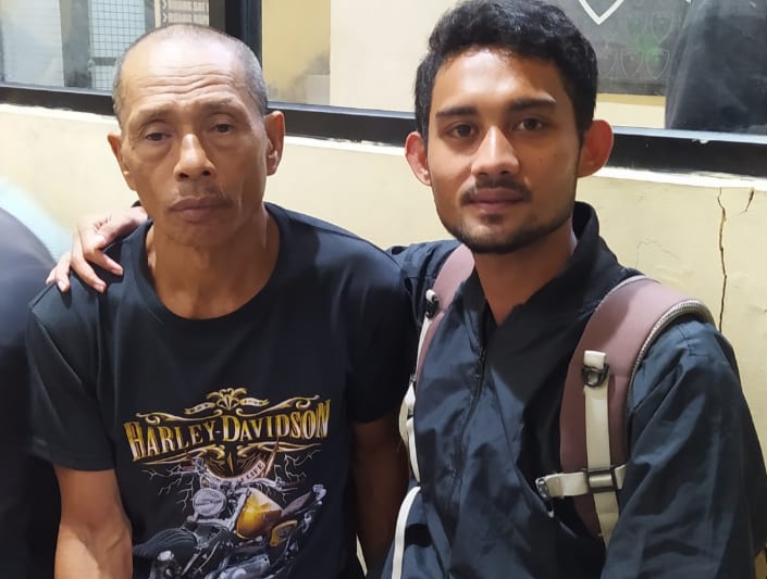 Rifa Hakim yang juga anggota Front Aksi Rakyat Sipil (FRAKSI) mengunjungi pak Demas, petani miskin yang kini harus mendekam di jeruji besi Polres Banggai.